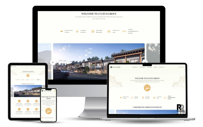 Cultus Grove is an exclusive residential development of 74 thoughtfully designed strata lots nestled in the scenic foothills of the Cascade Mountain Range, just a short walk from Cultus Lake, British Columbia. Represented by Kevin Brown of HomeLife Advantage Realty, the project offers studio, 2-bedroom, and 3-bedroom units starting in the mid $300s — featuring premium finishes, tourist accommodation zoning, and year-round recreational access. With a stunning product and a competitive market, Kevin needed a high-quality digital presence that could attract serious buyers, showcase floor plans, and drive registration inquiries effectively.